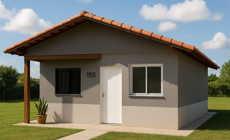 Casas populares econômicas, construídas do zero, com baixo orçamento e prazo.