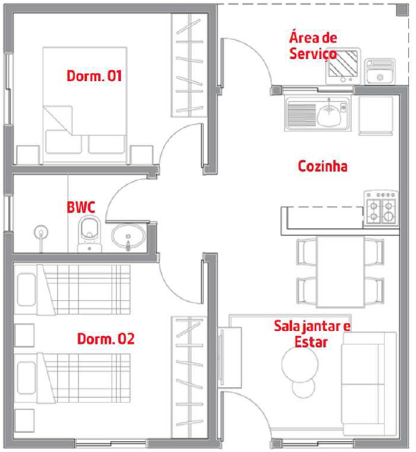Casa completa em alvenaria, 2 dormitórios , Elegante, Segura, Confortável e com Baixo Orçamento.